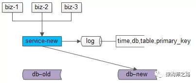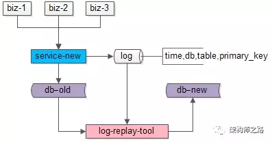 步骤一:服务进行升级,记录“对旧库上的数据修改”的日志(这里的修改,为数据的insert, delete, update),这个日志不需要记录详细数据,主要记录: