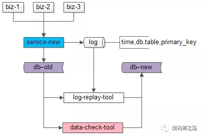 步骤三:研发一个读取日志并迁移数据的小工具,要把步骤二迁移数据过程中产生的差异数据追平。这个小工具需要做的是: