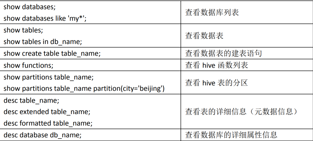 | Meta Store | Hive选择相应的数据库服务器来存储表,数据库,列的架构或元数据,表格,数据类型和HDFS映射。 |