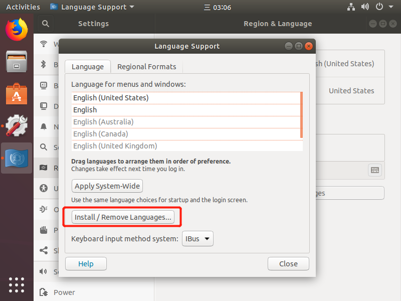 3.打开SystemSettings-->Language Support,系统会进行语言包搜索,照系统提示安装语言包。