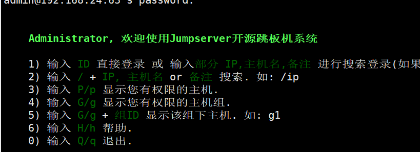 看到下面的提示代表成功,以后运行Jumpserver 都要运行以上source 命令 ,以下命令所有命令在该虚拟机环境中运行
