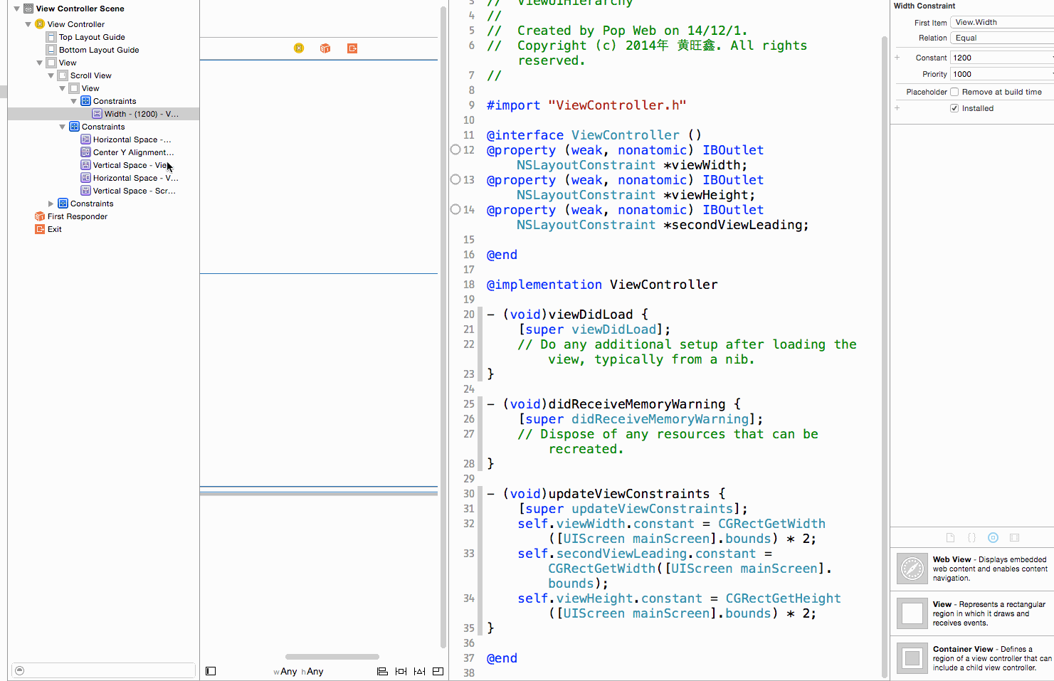 8.如果是想要动态设置ScrollView的宽度,也就是设置View的宽度约束的值, 我们将其拉成属性, 然后修改其值。