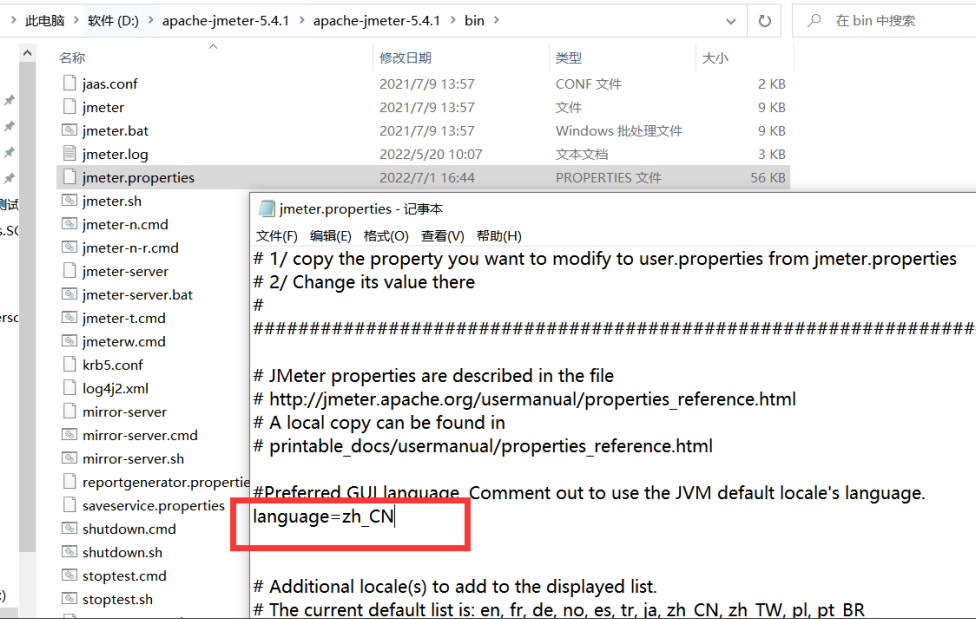 (不改,直接在#language=en,下面加一行language=zh_CN也行)