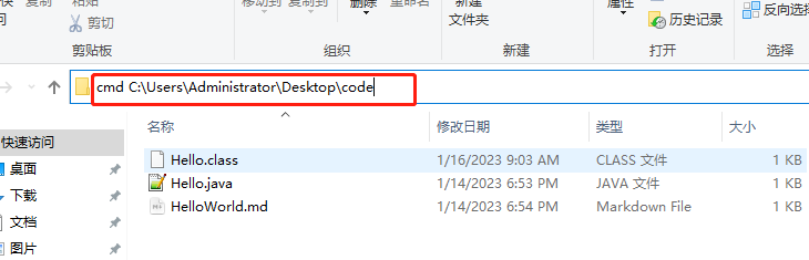 2、在文件夹中新建文件,后缀名为.java 起名为Hello.java