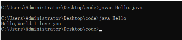 5、在打开的窗口中输入javac Hello.java(表示编译,需要带后缀),此时文件夹下会看到自动生成一个class文件,在窗口继续输入java Hello回车(表示运行class不需要带后缀)