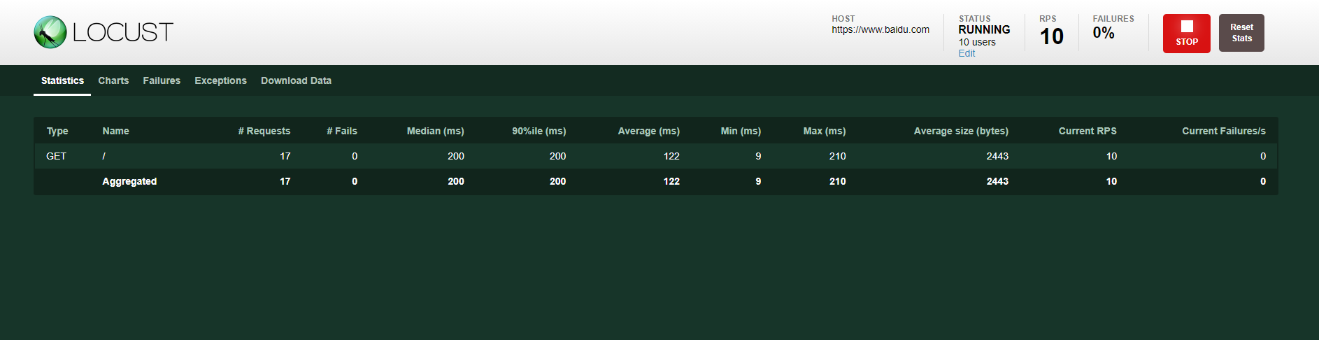 在测试过程中,策略就是一个Locust的蠕虫将会攻击你的网站。每一个locust的行为(或你使用的测试用户)是你自己定义的,并且蠕虫进程从一个网页视图中被实时监测。这样会帮助你来实现测试,在真实用户使用前定义系统的瓶颈。