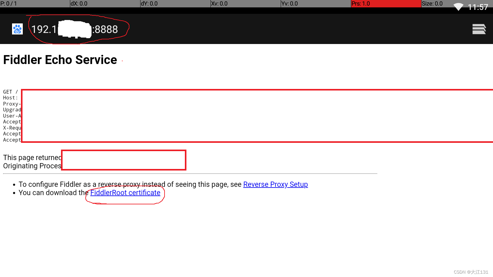 打开MuMu模拟器的浏览器,输入"xxx.xxx.xx.x:8888",点击跳转,在弹出的页面中点击FindlerRoot Certificate,下载证书。