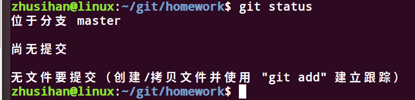 1 git status # 查看当前工作区(workspace)的状态