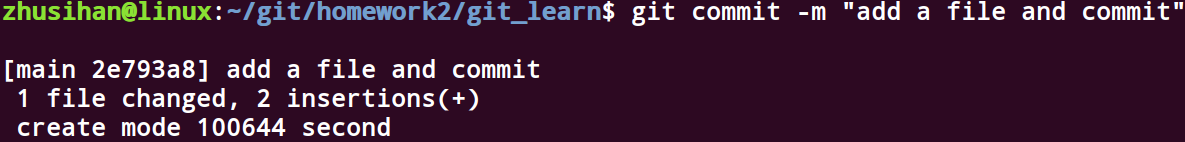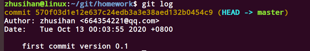 git commit -m "first commit” # 把暂存区里的文件提交到仓库,并使用m参数,添加提交注释