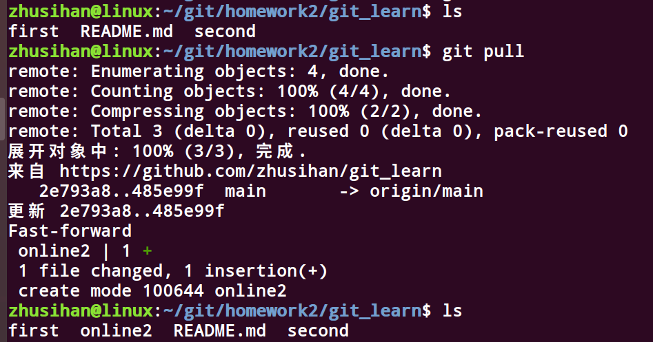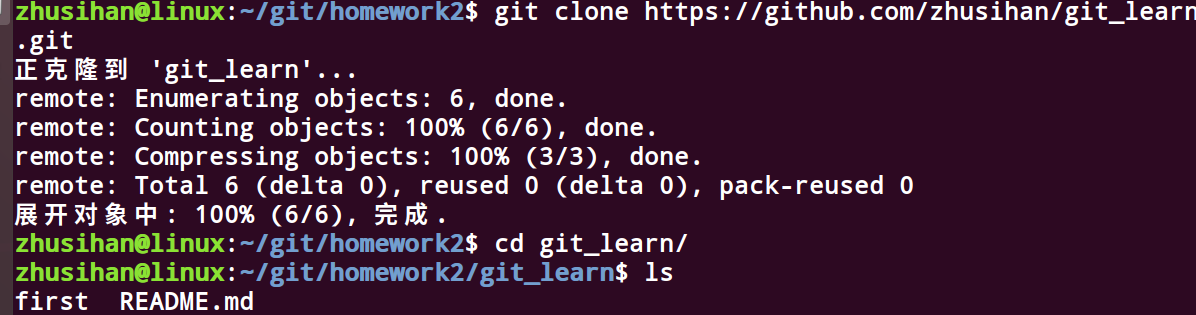 1 git clone https://github.com/zhusihan/git_learn.git #使用git clone 从远程版本库下载源码