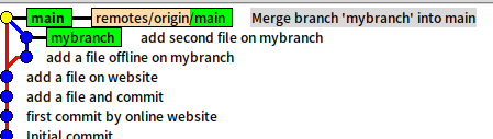 最后,先切换回master分支,将远程origin/master同步最新到本地存储库,再合并mybranch到master分支,推送到远程origin/master之后即完成了一项开发工作