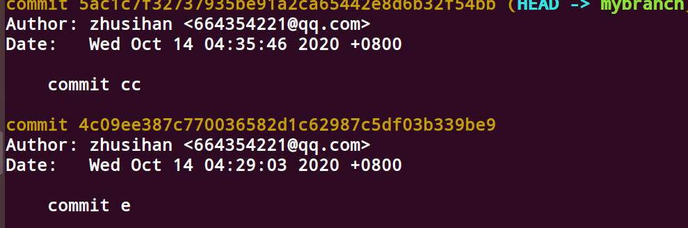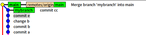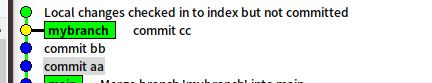 最后从gitk上,我们也可以看到,之前我们在mybranch的提交也只剩下了commit cc