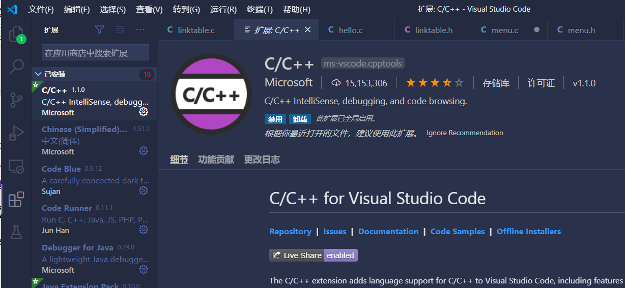 在menu项目中,源代码分为menu.c,menu.h,linktable.h,linktable.c。在.h文件中可以定义函数,常量,结构体,引入头文件等。在.c文件中引入.h头文件,使用.h文件中的定义。这样若以后定义变动,即可在.h文件中改动,保持代码变动简洁,易于维护。且该项目中,把对数据的直接操作都放在linktable.c文件中,menu.c文件只负责上层的逻辑,进一步解耦。