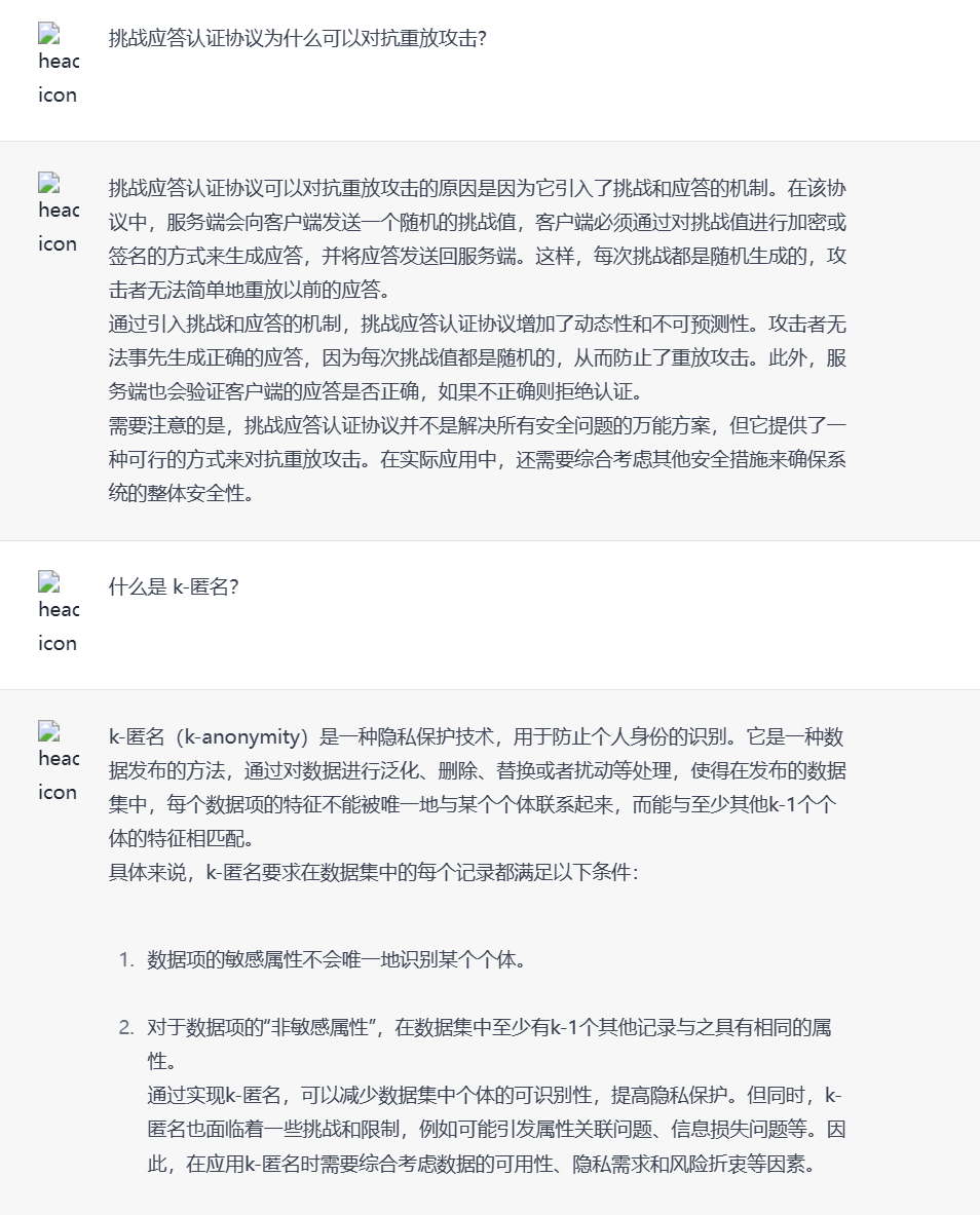 需要注意的是,挑战应答认证协议并不是解决所有安全问题的万能方案,但它提供了一种可行的方式来对抗重放攻击。在实际应用中,还需要综合考虑其他安全措施来确保系统的整体安全性。 - 问题2:什么是 k-匿名?