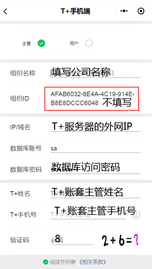 第三步:账套主管在“T加手机端”【创建组织】,填写以下信息: