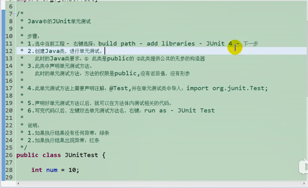 JUnit单元测试,最简单的步骤就是写下@Test然后点击它去导包就可以了。
