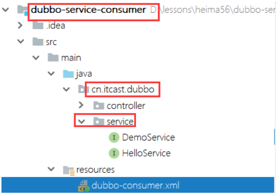 (3)将服务提供者工程中的HelloService接口复制到当前工程,路径和服务提供者的路径要一致