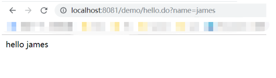 在浏览器输入http://localhost:8081/demo/hello.do?name=james,查看浏览器输出结果