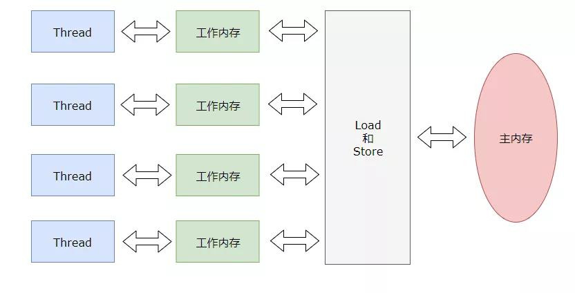 主内存共享的方式是线程各拷贝一份数据到工作内存中,操作完成后就刷新到主内存中。