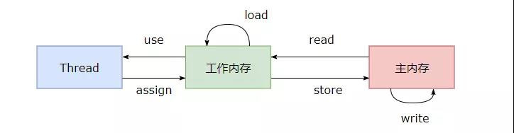 为了方便讨论,将内存间的交互操作简化为 3 个:load、assign、store。