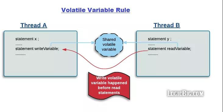 对一个 volatile 变量的写操作先行发生于后面对这个变量的读操作。