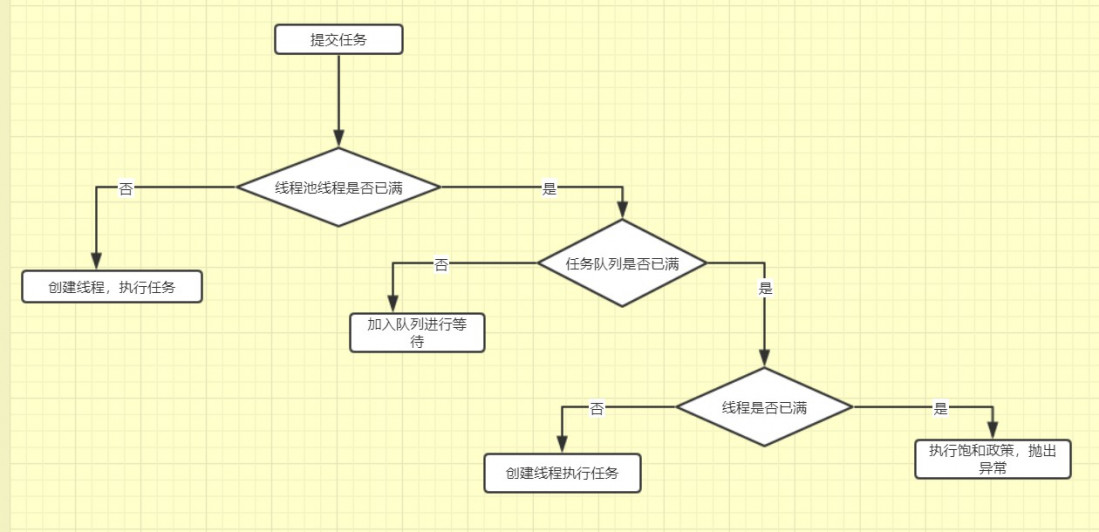 如果队列已经满了,则判断是否达到了线程池设置的最大线程数,如果没有达到,就创建新线程来执行任务。