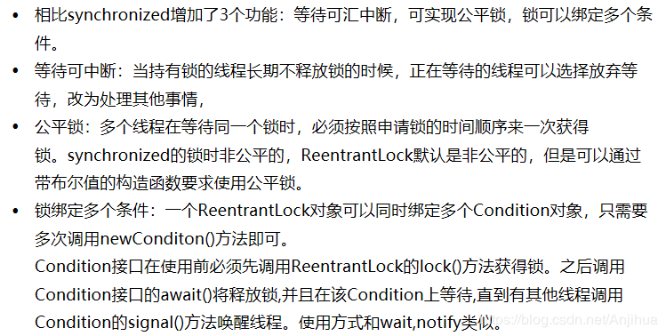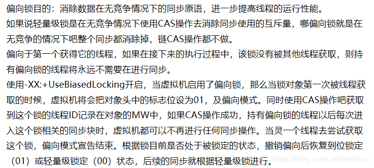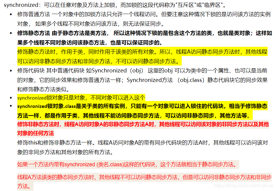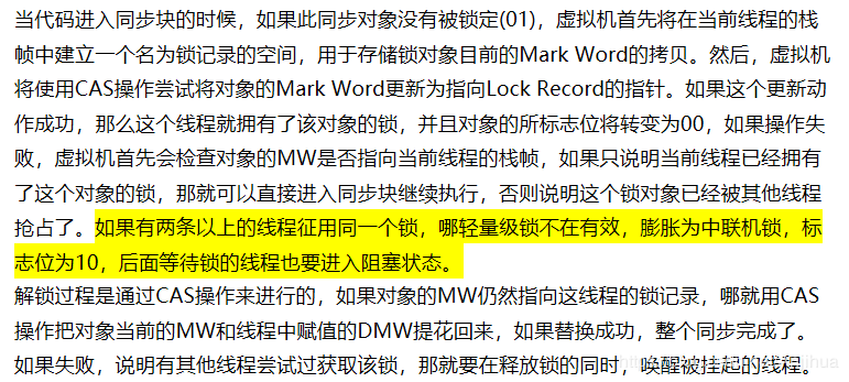 线程的创建 有四种方式: 1、实现Runnable接口并重写run()方法 public class StartRun implements Runnable{ public void run() { } } 使用://创建实现类对象 StartRun st=new StartRun(); //创建代理类对象 Thread t=new Thread(st); //启动 开启线程 t.start(); //不保证立即运行,由cpu调用 2、继承Thread类并重写run()方法 public class StartThread extends Thread{ public void run() { } } 使用://创建子类对象 StartThread st=new StartThread(); //启动 开启线程 st.start(); //不保证立即运行,由cpu调用 3、使用Collable并重写call()接口 class Run implements Callable{ //里面是泛型 @Override public Object call() throws Exception { return null; } } 必须使用ExecutorService.submit()方法 调用它 submit会返回一个对象Future,可以使用get()方法来得到该结果 4、使用线程池 ExecutorService exec1=Executors.newCachedThreadPool(); //创建所需数量的线程,在回收线程会停止创建新线程。 ExecutorService exec2=Executors.newFixedThreadPool(4); //有限个线程执行任务 ExecutorService exec3=Executors.newSingleThreadExecutor(); //一个线程 会序列化任务 ExecutorService exec4=Executors.newScheduledThreadPool(4); //参数是核心线程数,每隔一段时间重复执行任务。 还有线程池的参数: corePollSize 核心线程数 queneCapacity 等待队列 MaxPollSize 最大线程数 keepAliveTime 线程空闲时间 keepAliveTime 线程空闲时间 rejectedExecutionHandler 任务拒绝处理器 执行过程 1.当线程数小于核心线程数时,创建线程。 2.当线程数大于等于核心线程数,且任务队列未满时,将任务放入任务队列。 3.当线程数大于等于核心线程数,且任务队列已满。(1)若线程数小于最大线程数,创建线程。(2)若线程数等于最大线程数,抛出异常,拒绝任务。 当多个线程需要访问一个共享数据的时候就需要同步,不然会造成数据出错。 线程同步 使用synchronized关键字同步 <ignore_js_op>![]() 使用Lock加锁 每次得显示的使用Lock,并且使用try finally去关闭Lock,及unLock 使用:Lock lock=new ReentrantLock(); lock.lock(); try{ }finally{ lock.unlock(); } 使用Lock如果出现了异常可以去处理,但是synchronized只会抛出异常,无法处理。 使用volatile关键字 volatile作为java中的关键词之一,用以声明变量的值可能随时会别的线程修改,使用volatile修饰的变量会强制将修改的值立即写入主存,主存中值的更新会使缓存中的值失效,volatile会禁止指令重排。volatile具有可见性、有序性,不具备原子性。 注意,volatile不具备原子性,这是volatile与java中的synchronized、java.util.concurrent.locks.Lock最大的功能差异。 如果要实现原子性,可以使用原子类AtomicInteger等原子性变量类。 ReentrantLock是一个可重入锁,基本用法和synchronized差不多 <ignore_js_op>![]() 后面java为了优化锁还引入了自旋锁(CAS),轻量级锁,偏向锁等。 <ignore_js_op>![]() <ignore_js_op>![]() 但是CAS可能会出现ABA问题;及如果线程1将值改为B,线程2将值改为A,当线程3去修改值,到底修改了吗? <ignore_js_op>![]() <ignore_js_op>![]() <ignore_js_op>![]() 线程状态 Thread类包含interrupt()方法,因此可以终止阻塞的任务,这个方法将设置线程的中断状态。 可以使用sleep()和wait()方法让线程进入阻塞状态 sleep和wait区别: 1、wait需要notify和notifyAll方法唤醒,sleep里面的参数是毫秒数,让线程阻塞多长时间。 2、wait会让线程释放锁,而sleep不会释放锁 使用notify和notifyAll方法,或者java.util.concurrent类库中等价的signal()或signalAll()方法,线程才会进入就绪状态。 一个线程可以在其他线程之上调用join()方法,其效果是等待一段时间直到第二个线程结束才恢复。 在使用锁的时候可能会造成死锁 <ignore_js_op> 预防死锁的就是银行家算法 <ignore_js_op>![]() 总共的资源不仅足够一个线程的需求,还要满足其他线程的需求。 <ignore_js_op>![]() 解决死锁的就是哲学家算法 5个哲学家围着吃饭,每个人中间有一个筷子,每个人必须拿着左右两个筷子才可以就餐,如果每个哲学家先拿起左边的筷子,哪每个哲学家就需要等待其他哲学家释放筷子,造成死锁。 <ignore_js_op>![]() |
