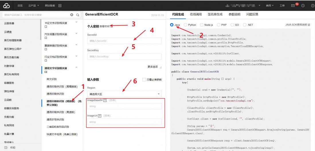 https://ocr.tencentcloudapi.com/?Action=GeneralEfficientOCR&ImageUrl=https://xx/a.jpg&<公共请求参数>