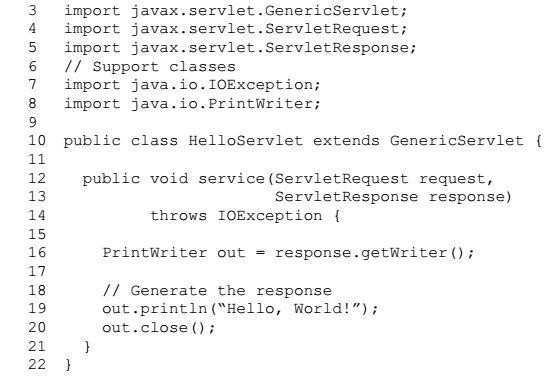 另外,开发一个Servlet并不复杂,看一个Servlet编写的HelloWorld应用: