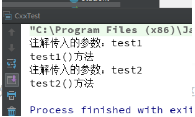 public static void main(String[] args) throws InvocationTargetException, IllegalAccessException, InstantiationException { Class clazz = CxxTest.class; Method[] methods = clazz.getMethods(); for (Method method : methods) { boolean flag = method.isAnnotationPresent(Cxx.class); if (flag){ Cxx c = method.getAnnotation(Cxx.class); System.out.println("注解传入的参数:"+c.value()); method.invoke(clazz.newInstance()); } } } |