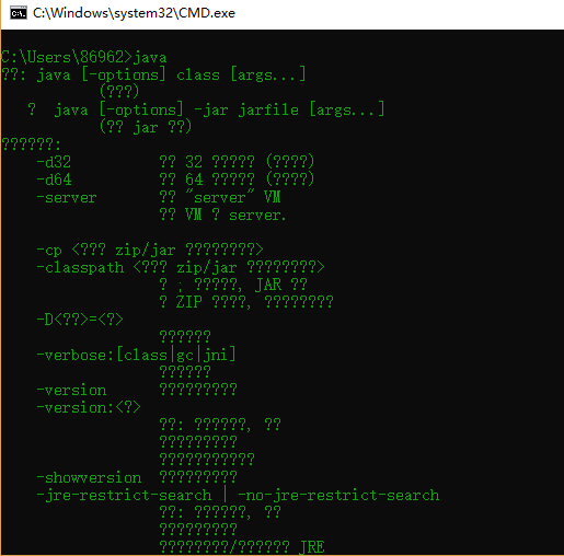 昨天在WIN10系统下完成了Java环境的安装配置,          配置完成后验证环境的时候出了一个小插曲—输入java后窗口内中文字符出现乱码,