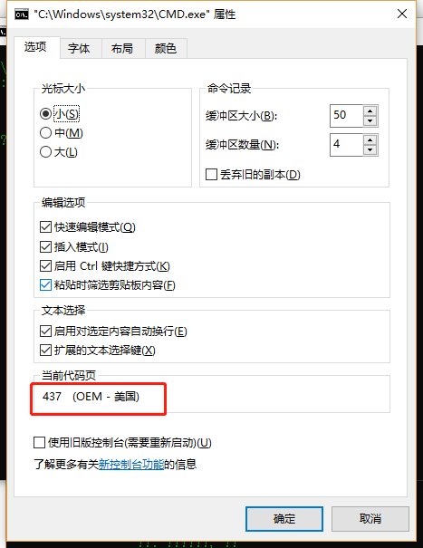在经过一番google之后,发现,原来是我cmd窗口的代码页默认是437美国
