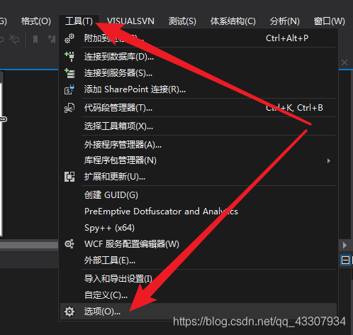 1、打开VS,点击工具、选项