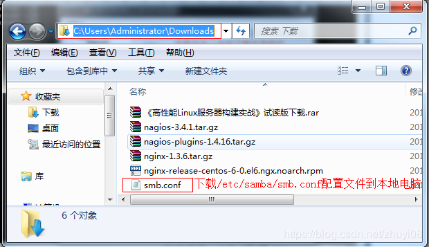 输入命令sz /etc/samba/smb.conf,这样就把指定的文件下载到之前指定目录。
