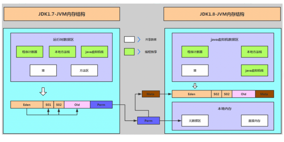 注意,JDK1.8以后 方法区 变为元空间或者永久代