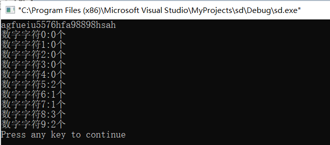 printf("数字字符%d:%d个\n",i,cnt[i]);