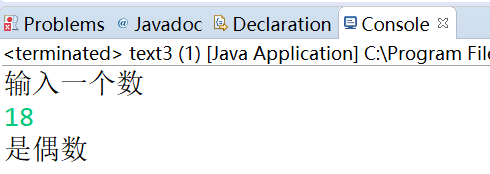 package 作业1; import java.util.Scanner; public class text3 { public static void main(String[] args) { // TODO Auto-generated method stub Scanner input=new Scanner(System.in); System.out.println("输入一个数"); int a=input.nextInt(); if(a%2==0){ System.out.println("是偶数"); }else{ System.out.println("是奇数"); } } }