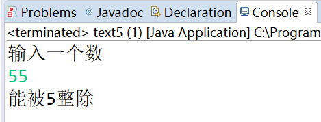 package 作业1; import java.util.Scanner; public class text5 { public static void main(String[] args) { // TODO Auto-generated method stub Scanner input=new Scanner(System.in); System.out.println("输入一个数"); int a=input.nextInt(); if(a%5==0&&a%6==0){ System.out.println("能被5和6整除"); }else if(a%6==0){ System.out.println("能被6整除"); }else if(a%5==0){ System.out.println("能被5整除"); }else{ System.out.println("不能被5或6整除"); } } }