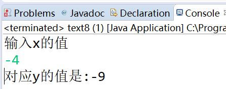 package 作业1; import java.util.Scanner; public class text8 { public static void main(String[] args) { // TODO Auto-generated method stub Scanner input=new Scanner(System.in); System.out.println("输入x的值"); int x=input.nextInt(); int y; if(x>0){ y=x+3; System.out.println("对应y的值是:"+y); }else if(x==0){ y=0; System.out.println("对应y的值是:"+y); }else if(x<0){ y=x*2-1; System.out.println("对应y的值是:"+y); } } }