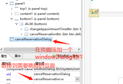 1.在父页面新建windowDialog组件,设置其src属性选择要跳转的子页面文件