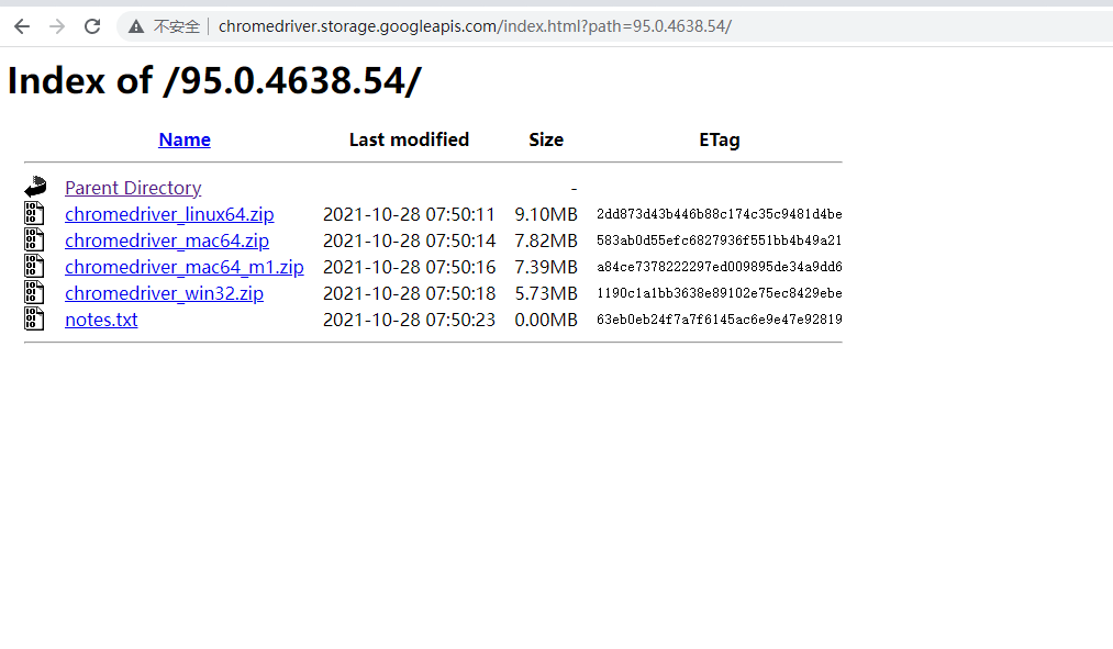 下载地址:http://chromedriver.storage.googleapis.com/index.html