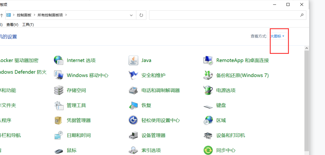 2、修改右上角查看方式为:大图标,然后再页面上找到 管理工具,并点击;进入管理工具