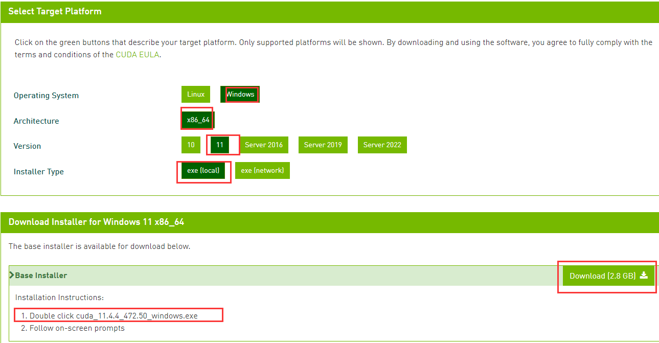 2、下载对应版本的cuda,网址:https://developer.nvidia.com/cuda-toolkit-archive