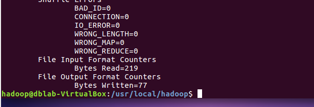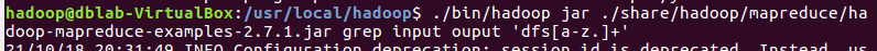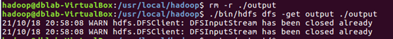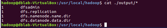 运行MapReduce示例作业,输出结果放在output目录下