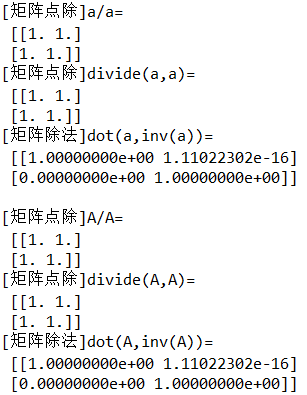 print("[矩阵除法]dot(A,inv(A))=\n",D)