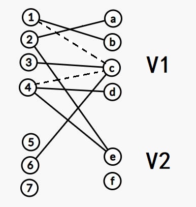 - 对于取到的边独立集中任意一条边,其至多只有一个顶点与 V2 中的顶点有边