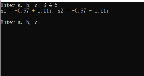 printf("Enter a, b, c: ");