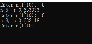 printf("n=%d, s=%f",n,(double)sum);