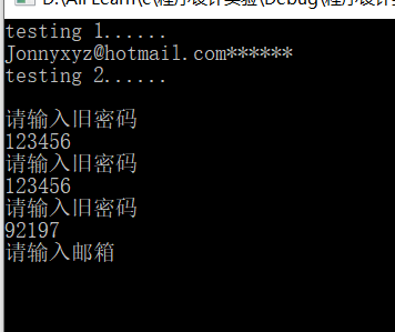 #include<iostream> #include <string> #include"user.h" using namespace std; int User::n = 0; void User::set_email(){ string s; cout << "请输入邮箱" << endl; cin >> s; email = s; } void User::change_passwd(){ int n = 3; while (n--){ cout << "请输入旧密码" << endl; string s; cin >> s; if (s == passwd){ string t; cin >> t; email = t; break; } } } void User::print_info(){ cout << name << email << "******"; } void User::print_n(){ cout<<n<<endl; }