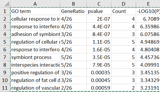 首先,准备一个 GO 或者 KEGG 分析的结果文档!